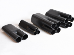 產品特點:四指套,采用交聯聚烯烴材料和熱熔膠復合而成,套在多芯電纜線芯分支處,加熱即收縮,內壁的熱熔膠會將電纜緊緊粘住,起到防水防潮密封保護作用,外層的輻射交聯聚烯烴材料可起到電氣絕緣防護作用。